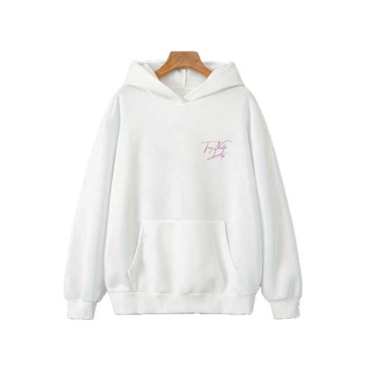 Premium Construction: Crafted from heavyweight fleece on a clean white canvas, this hoodie is built for both comfort and a modern, structured silhouette.